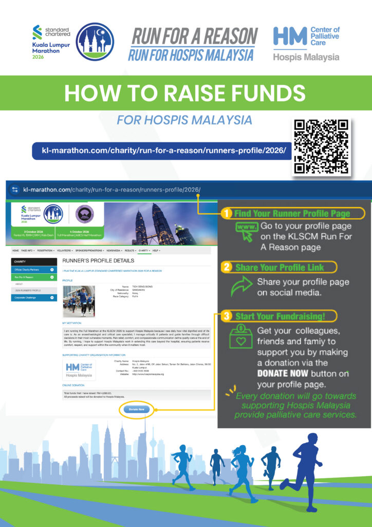 Hospis Malaysia is proud to once again be a Run For A Reason (RFAR) charity partner at KLSCM 2026. Join us in making a real difference in the lives of patients and their families through your run!Â